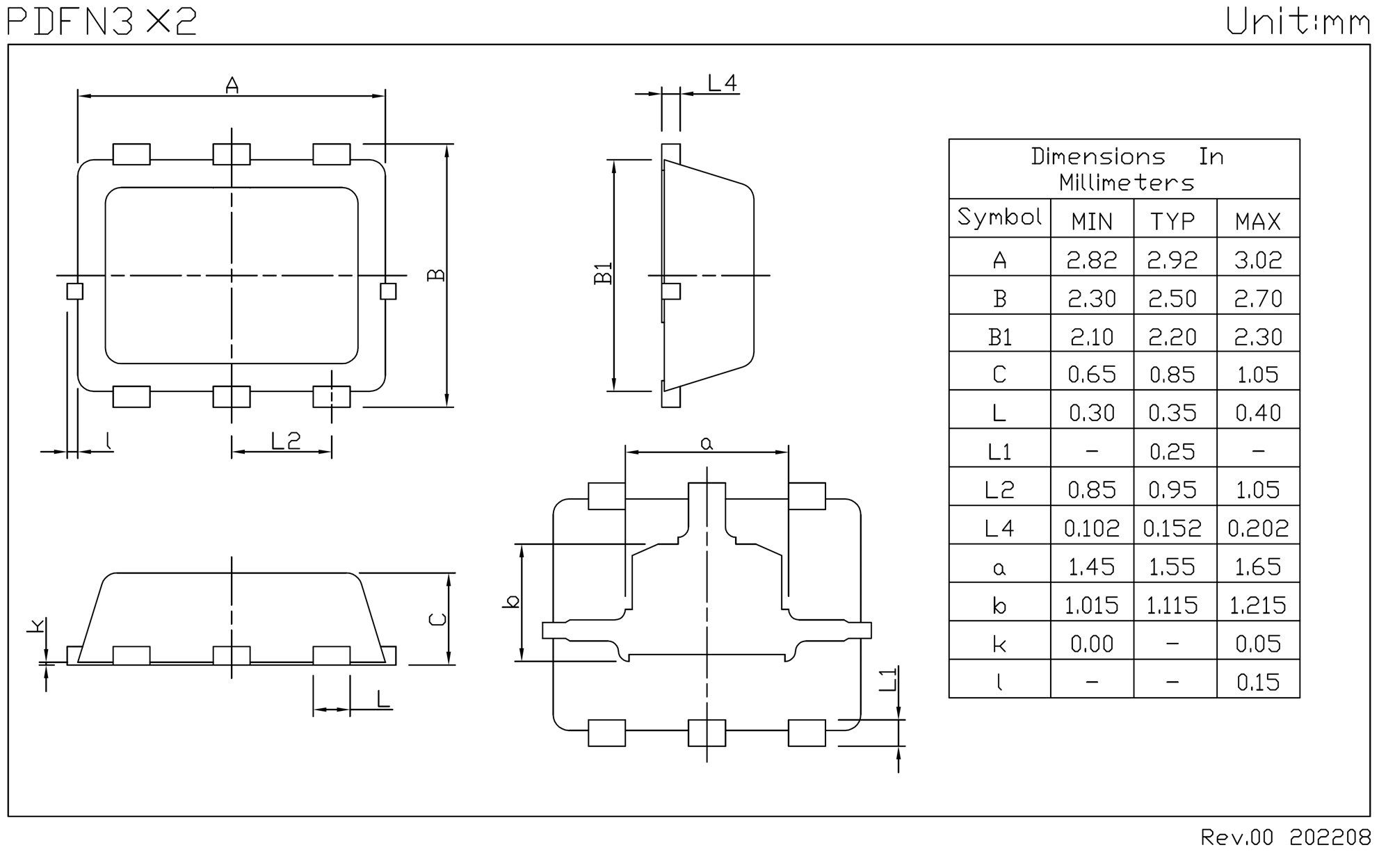 <img src="/package/PDFN3×2-6L.gif" alt="" width="750" height="600" title="" align="" /><img src="/package/PDFN3×2-6L外形尺寸图.png" alt="" width="970" height="600" title="" align="" />            </div>